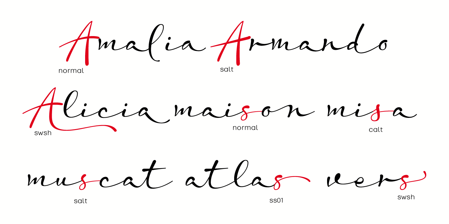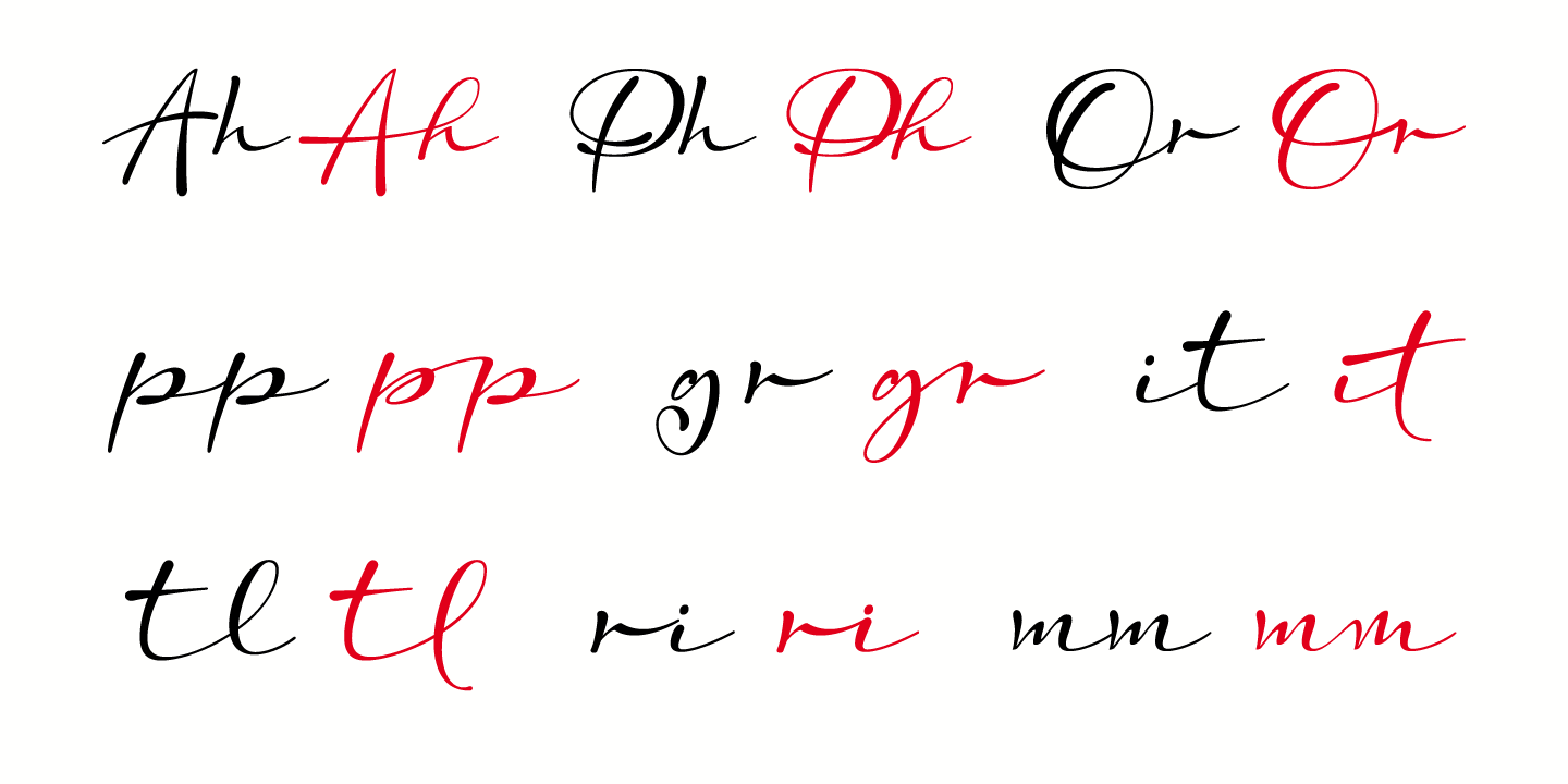 Escaut includes a huge variety of ligatures and decorative characters in upper and lower case, to give it more handwriting reality. These features ensure that connections remain smooth and varied, allowing you to create text that looks less like a font and more like natural writing.