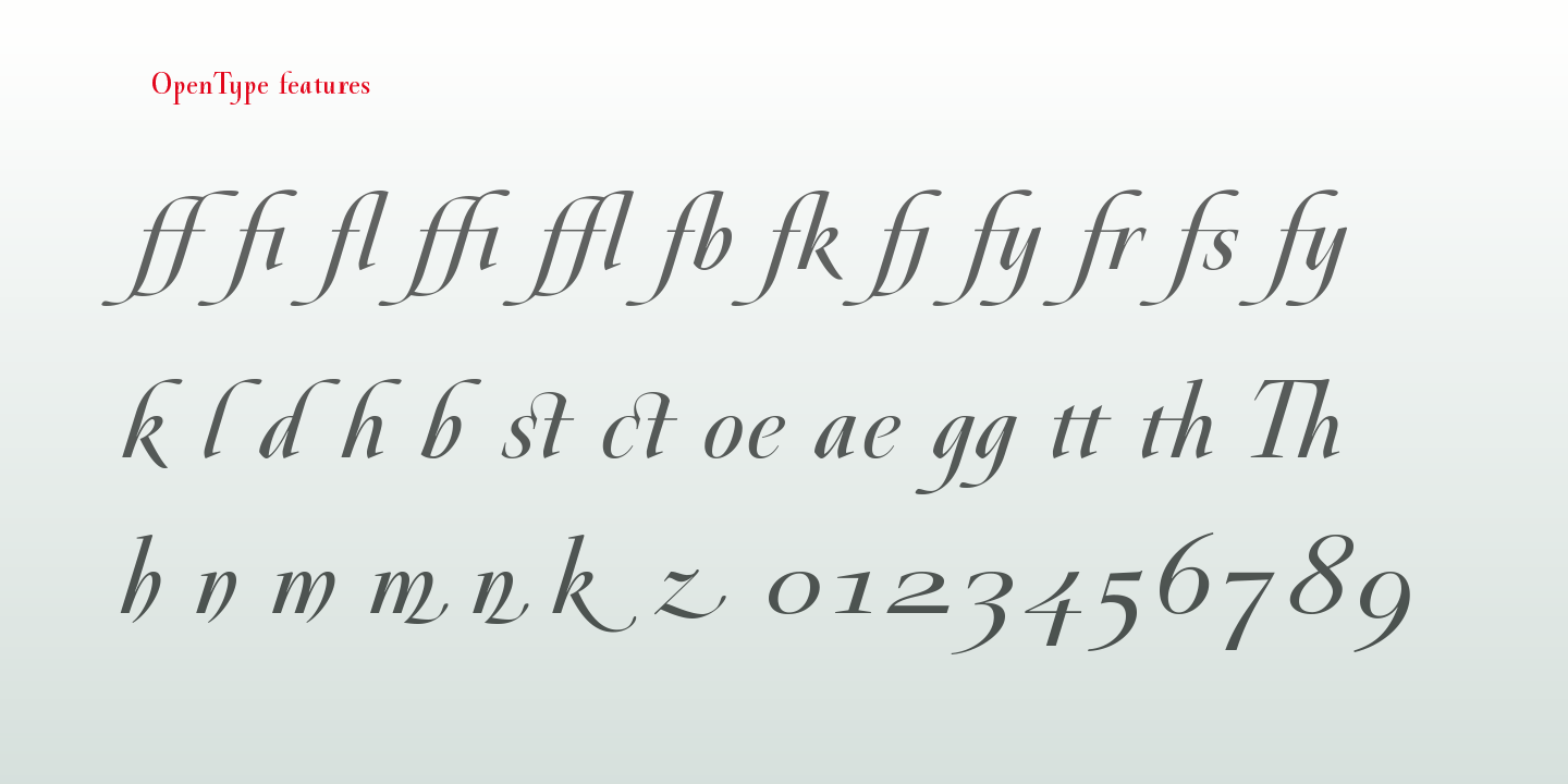 Galdana is a Roman serif type family distinguished by its expressive and unmistakable true italic, featuring a bold 17-degree slant that gives the typeface a strong sense of movement and personality. This defining characteristic sets Galdana apart from conventional serif families and brings a vibrant, calligraphic energy to both editorial and display typography. The design is inspired by the work of Oscar Ogg, one of the most influential American calligraphers and book designers of the twentieth century, whose legacy is reflected in the typeface’s refined rhythm and elegant stroke modulation.