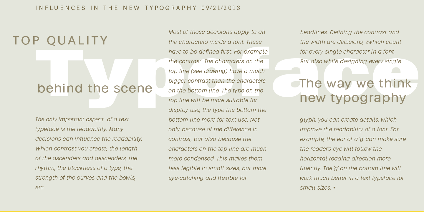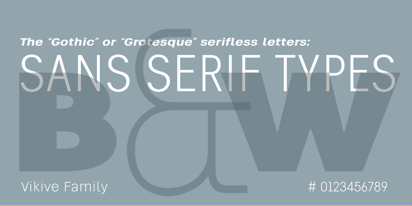 Vikive is a Sans Serif type family rooted in the rich traditions of American Gothic and European Grotesque design. While experts typically classify Sans Serif fonts into three main groups—Grotesque, Geometric, and Humanist—Vikive stands out by blending the strengths of the first two. It features a generous x-height, subtly squared curves, a wide stance, open terminals, and a clean, straightforward construction.